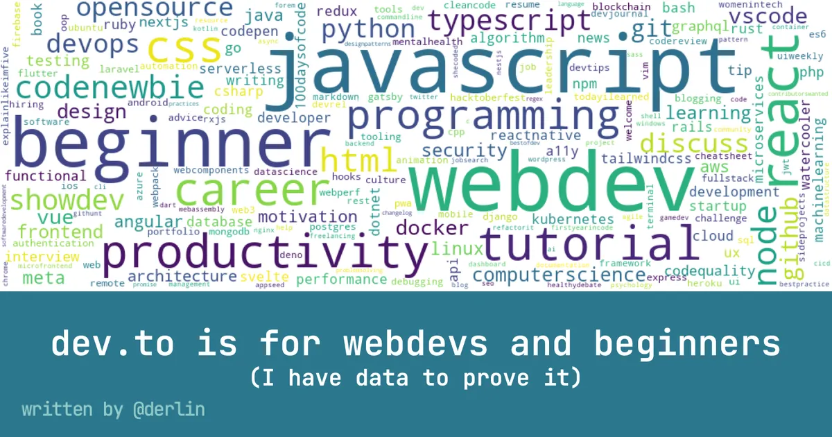 I am on dev.to for a while now, and I couldn’t help noticing that most of the featured articles I see are web development related (javascript, webdev), or targeted at beginners (beginners, basic git commands, etc.).