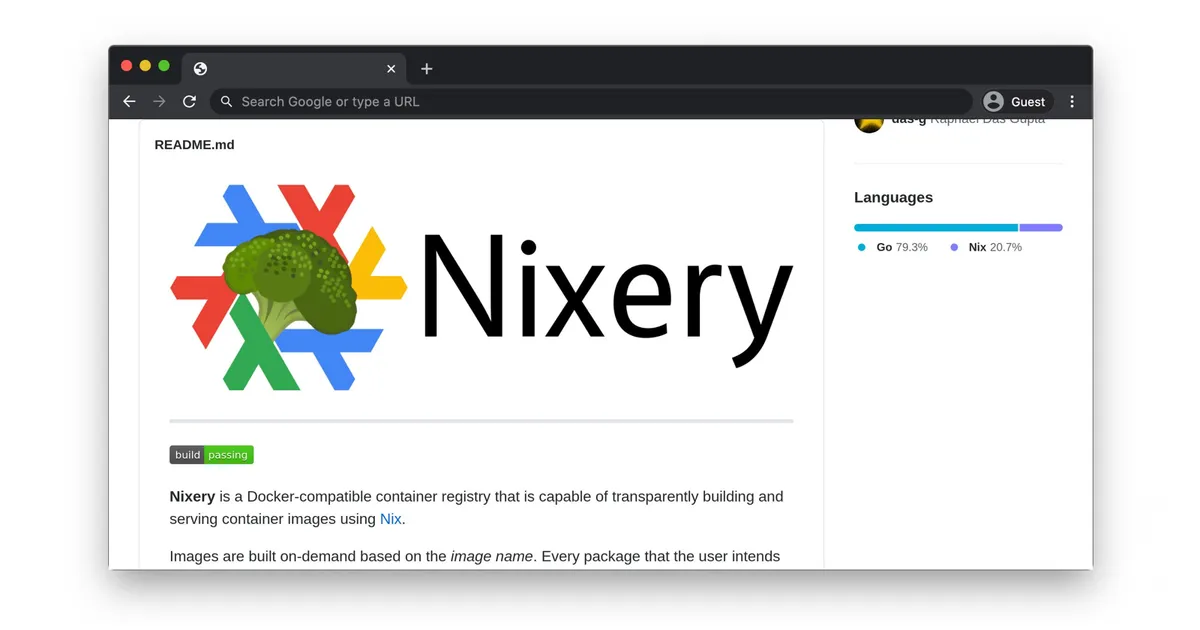 Nixery is a Docker-compatible container registry that is capable of transparently building and serving container images using Nix.